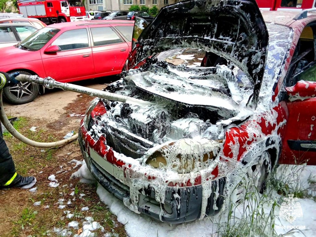 2 июня во 2-ом микрорайоне города Десногорска случилось возгорание под капотом припаркованного легкового автомобиля.