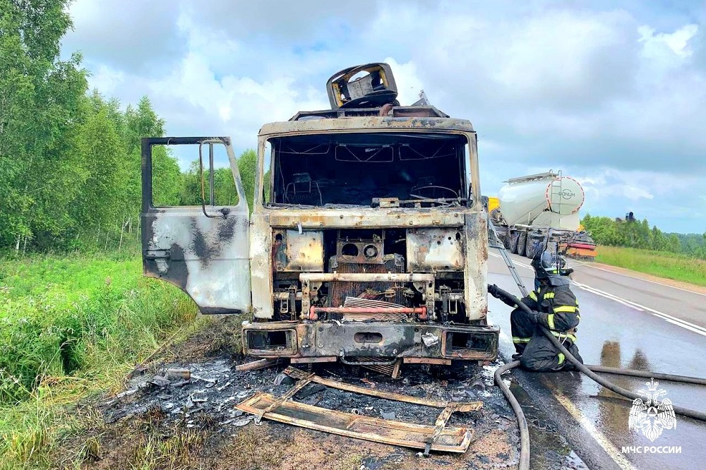 В результате случившегося никто не пострадал. Кабина транспортного средства выгорела полностью.
