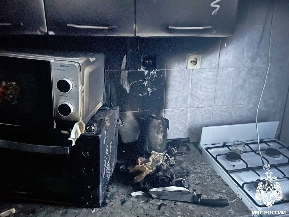 В результате возгорания электроприборы уничтожены, повреждена другая кухонная техника и кухонный гарнитур.