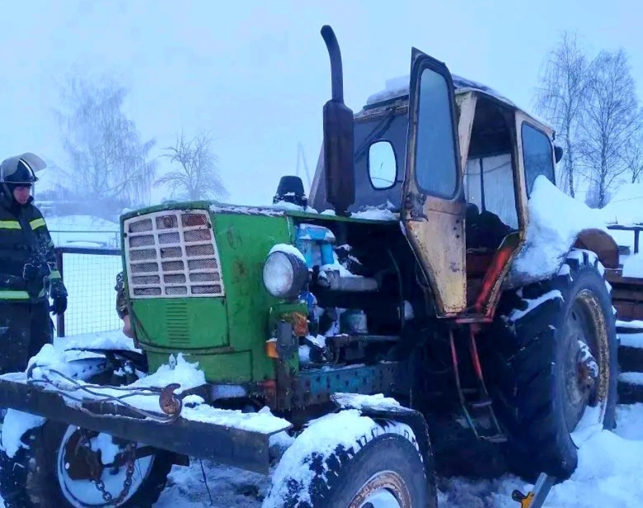 Во время подготовки к уборке снега, местный житель, запуская трактор с помощью пускача, стал свидетелем внезапного возгорания. Огонь быстро охватил кабину сельскохозяйственной машины.