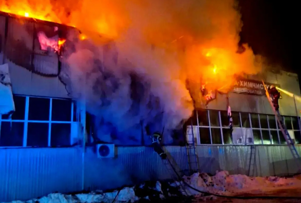Сегодня, 8 февраля, в Смоленске произошёл пожар в ремонтной мастерской для крупногабаритной автомобильной техники на улице Лавочкина.