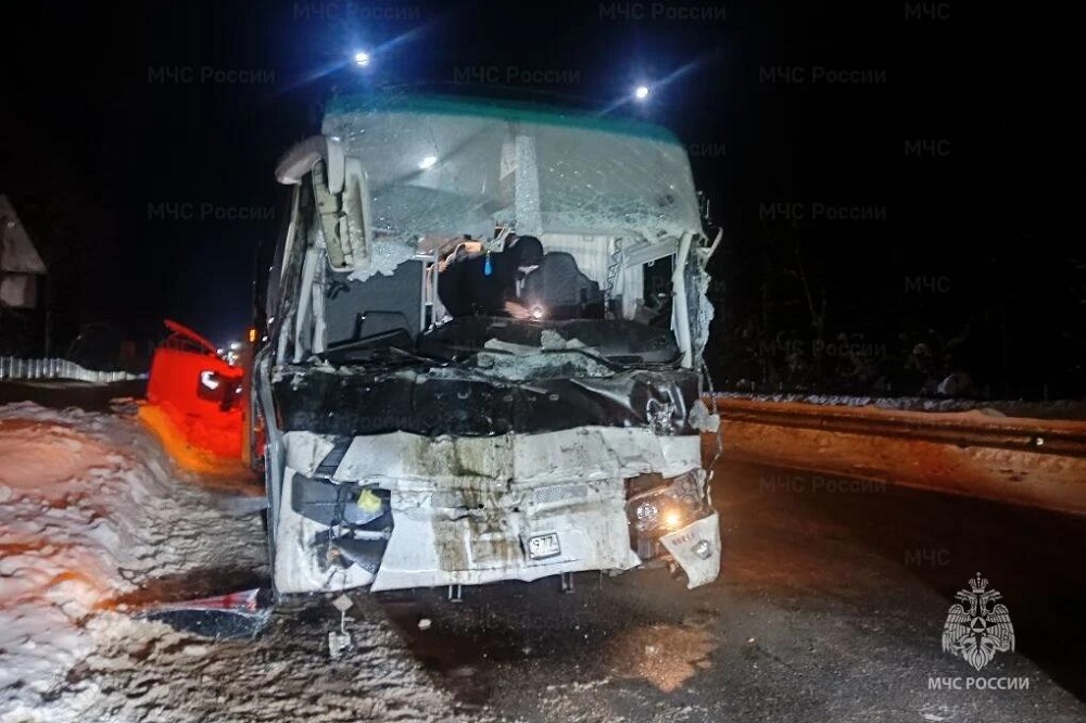 В Вяземском округе Смоленской области на 250-м километре трассы М-1 попутно столкнулись грузовик и автобус. Авария произошла сегодня, 12 февраля, в третьем часу ночи.