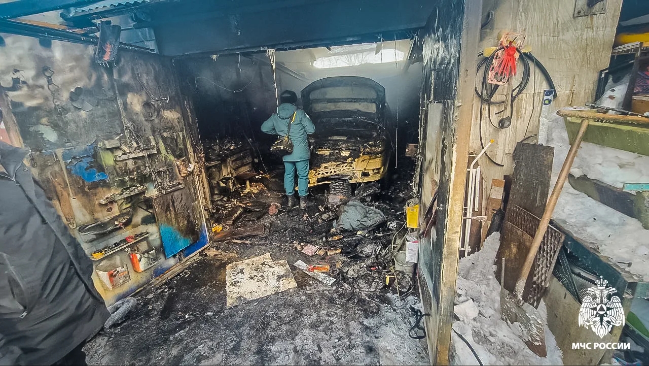 Пожар начался внутри одного из гаражей, где находился легковой автомобиль. Подразделения МЧС России оперативно прибыли на место происшествия и в кратчайшие сроки ликвидировали пожар на площади 35 квадратных метров.
