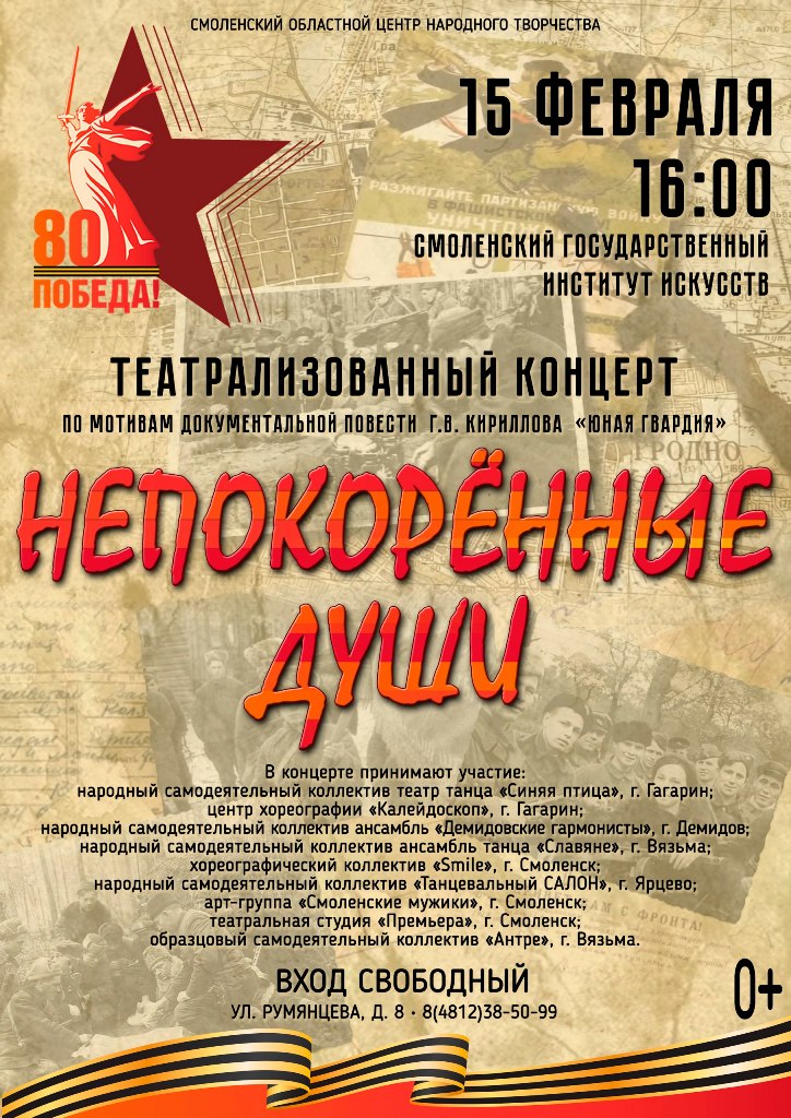 15 февраля в 16:00 в Смоленском государственном институте искусств состоится театрализованный концерт «Непокорённые души».