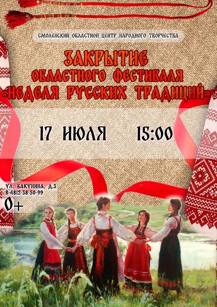 В Смоленске в этот день всех желающих приглашают в областной Центр народного творчества на закрытие регионального фестиваля «Неделя русских традиций».