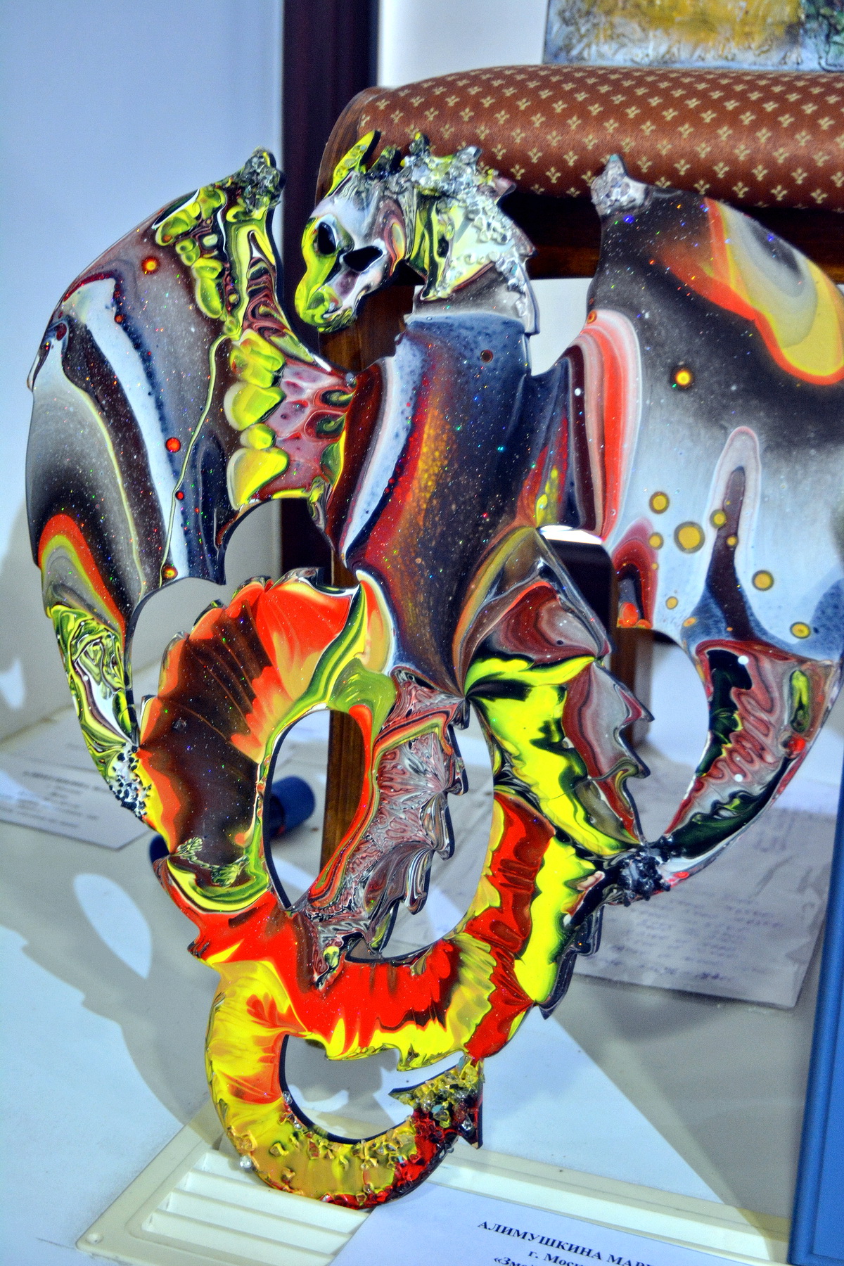 Кстати, выставка оформлена так, что посетители могут с информационных листов узнать биографии авторов, а также замысел их произведений. Так, Юлия Баженова про свою работу «Волшебное» пишет: «Настраивает на позитив и веру в чудеса, помогает в исполнении желаний». Ещё они подготовили небольшие буклеты с фотографиями работ и их описанием.