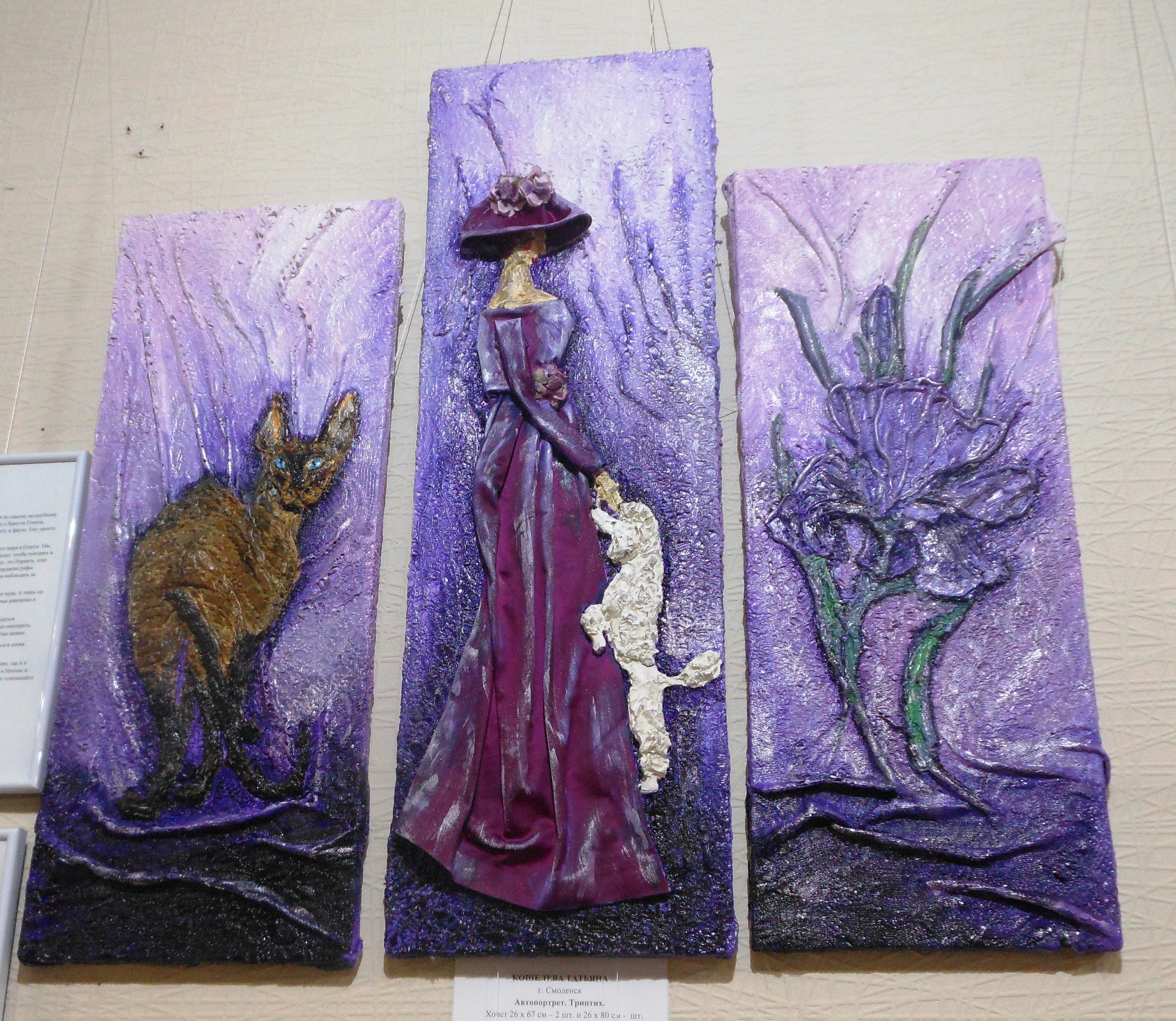 Все до одной картины имеют настроение – оно выражается красками, формами, сюжетами, оно – разное, но, в любом случае, положительное. Фактурные работы заставляют остановиться, присмотреться, задуматься. Они могут быть украшением любого интерьера, особенно современного. Отдельные работы адресованы детям – в этом случае объём играет особо важное значение для восприятия. Смоленская тема также прозвучала в работах.