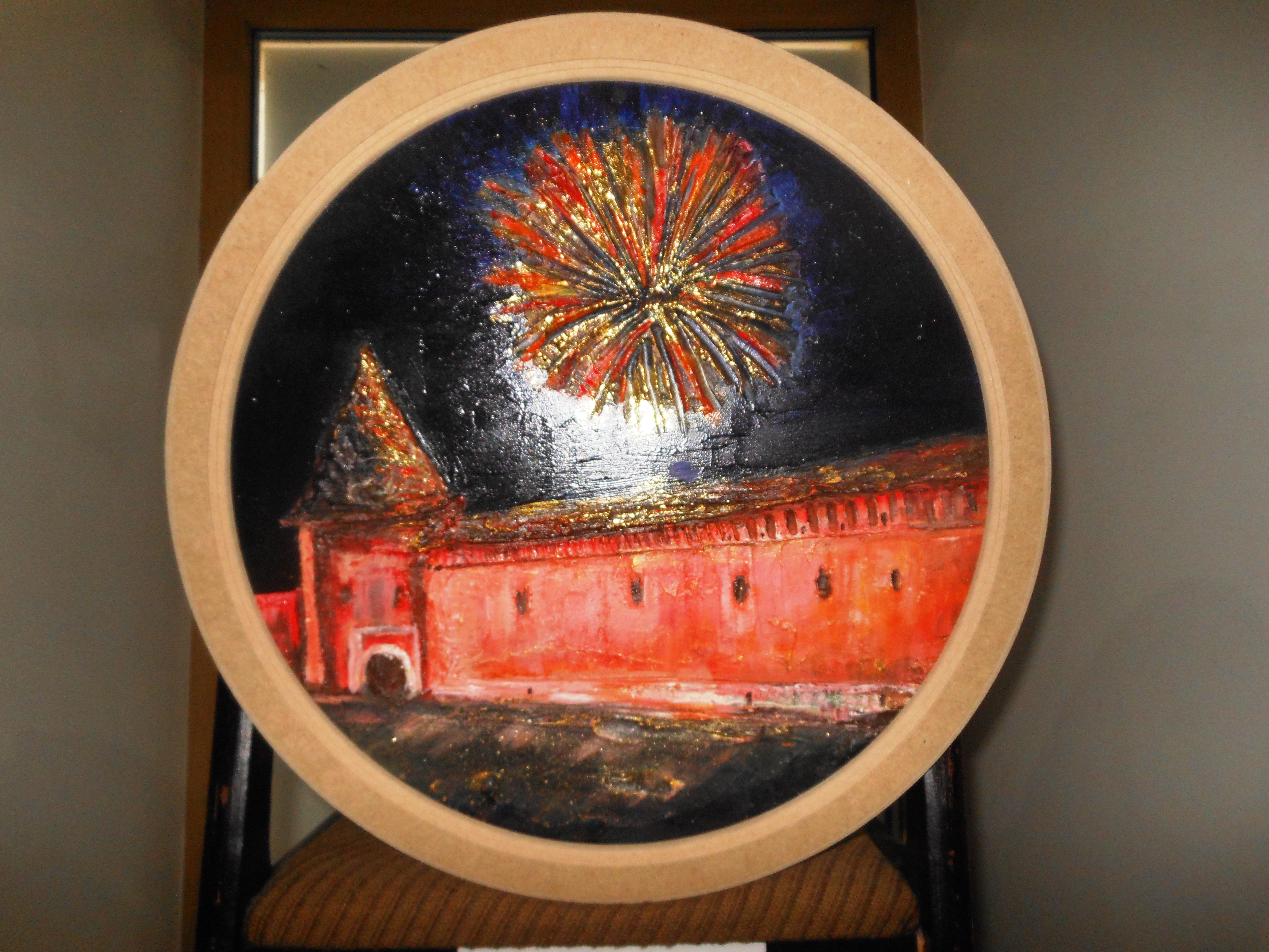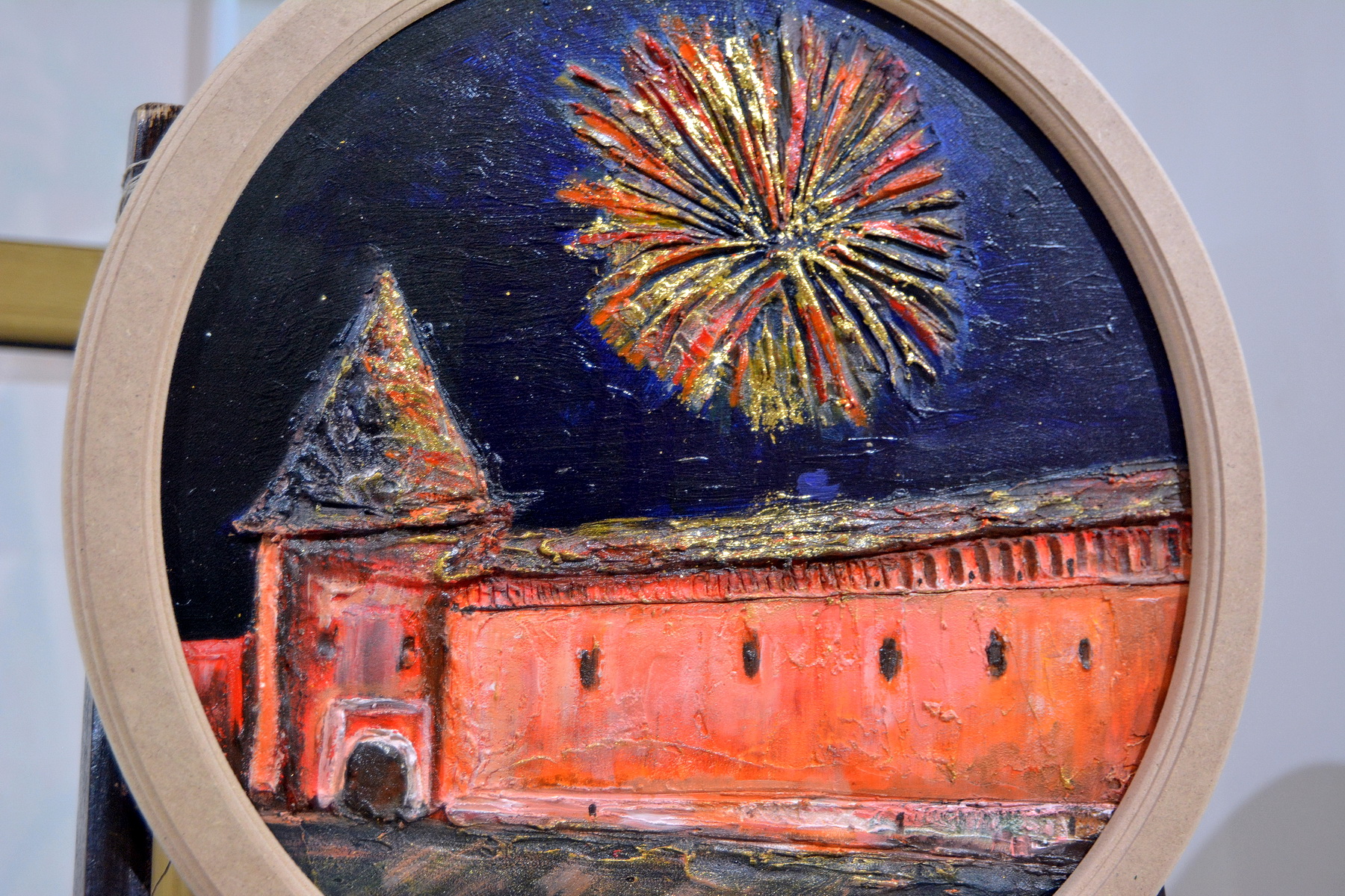 – Я очень люблю нашу Смоленскую стену, украшение города. Захотелось сделать серию работ, посвященных этому великому историческому сооружению. Начала творить. И однажды, 17 мая, когда шла по центру города во время Ночи музеев, увидела прекрасную Громовую башню в свете фонарей, сделала фото… А потом с помощью фактуры постаралась изобразить на холсте это глубокое небо, силуэт башни, волшебный свет. Так, уже 18-19 мая появилась пара картин, посвященных Ночи музеев.