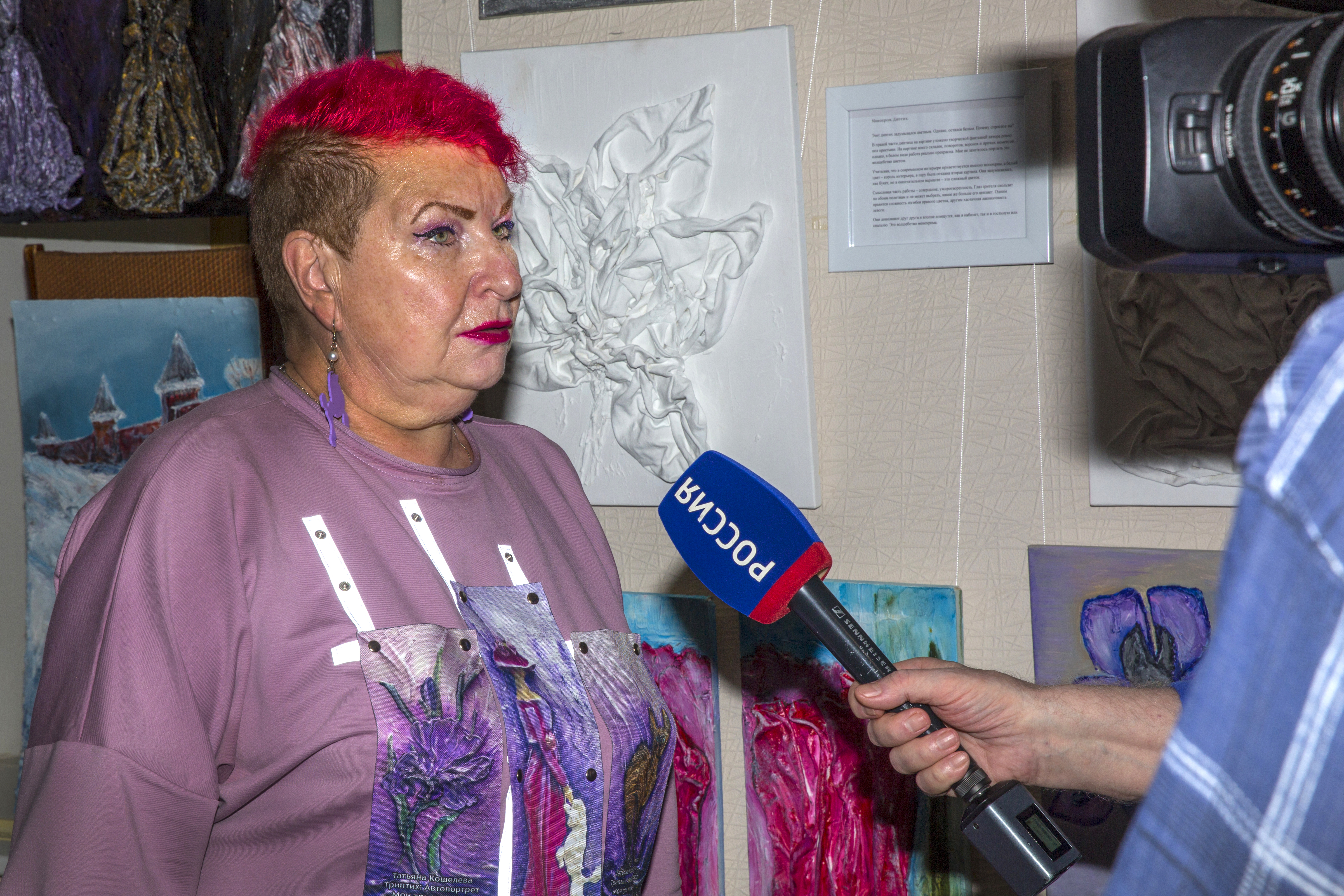 Накануне открытия в галерее «Смоленский вернисаж» выставки под названием «Волшебный мир фактурных художников» она сделала запись у себя в соцсетях: «18 самых активных художниц Межрегионального союза художников «НеАрт»! Это вторая выставка авторов со своими картинами. Приятно, что на этот раз в нашей копилке не только фактурная живопись, но и работы маслом, графика, декоративные изделия. Дамам будет предложена коллекция авторских кулонов, а так же магниты на любой вкус, кошелек и возраст. Нашим творцам многое по плечу, второй раз в Смоленске проходит наша выставка. На этот раз нас гостеприимно встречает галерея «Смоленский вернисаж». Вчера развесили 95 картин, сегодня добавилось еще 10, а в дороге еще две посылки из Барнаула и Красноярска».