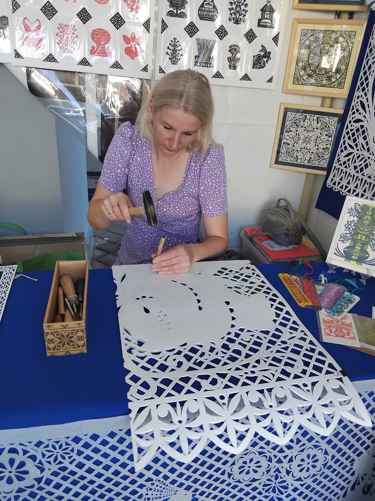 Увидеть работы конкурсантов мог любой желающий. Как и побеседовать с мастерами, охотно рассказывающими о своём творчестве и любви к вытинанке.