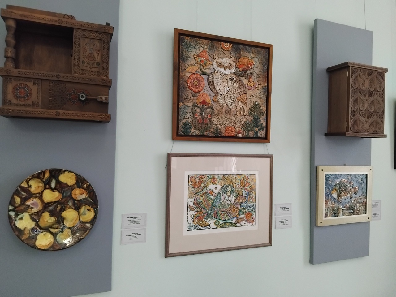 Для меня история «Славянского базара в Витебске»-2025 началась с презентации сразу нескольких выставочных проектов. И первой была выставка в ратуше «Традиции Абрамцева сквозь века», в экспозиции которой представлено более сотни экспонатов из собрания музея-заповедника «Абрамцево»: живопись, керамика и знаменитая абрамцево-кудринская резьба по дереву.