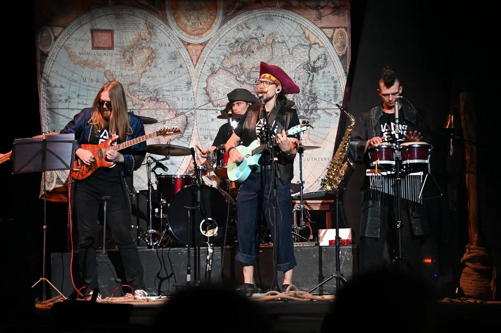 Персонажей пиратской истории представил замечательный актерский ансамбль. Особым украшением спектакля стало драйвовое музыкальное сопровождение от смоленской группы MAMA LET’S GO. Музыканты исполнили собственные песни и завораживающие морские мотивы.
