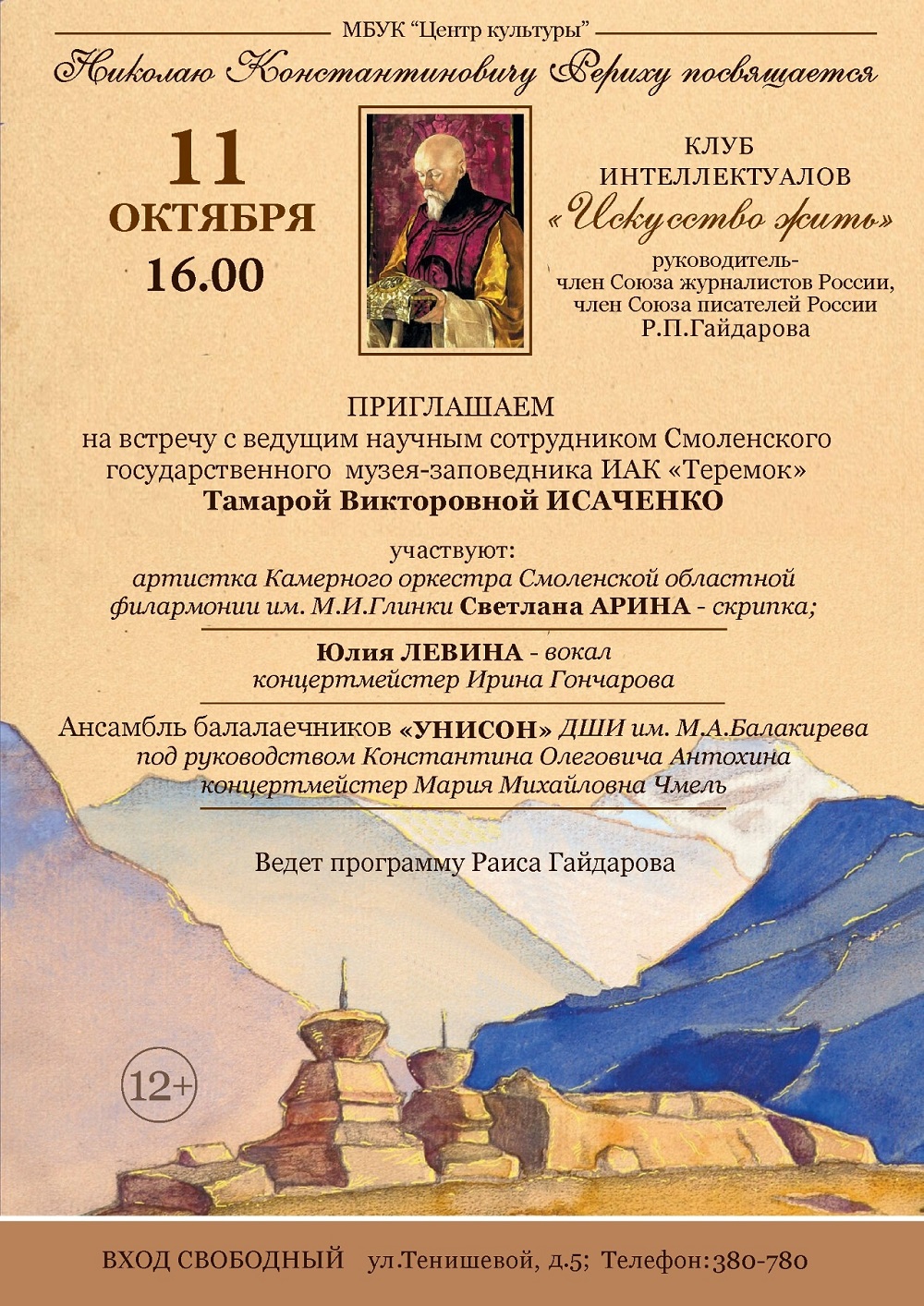 В Смоленске возобновил работу клуб интеллектуалов «Искусство жить». МБУК «Центр Культуры» приглашает смолян на ближайшее мероприятие клуба, которое состоится 11 октября.