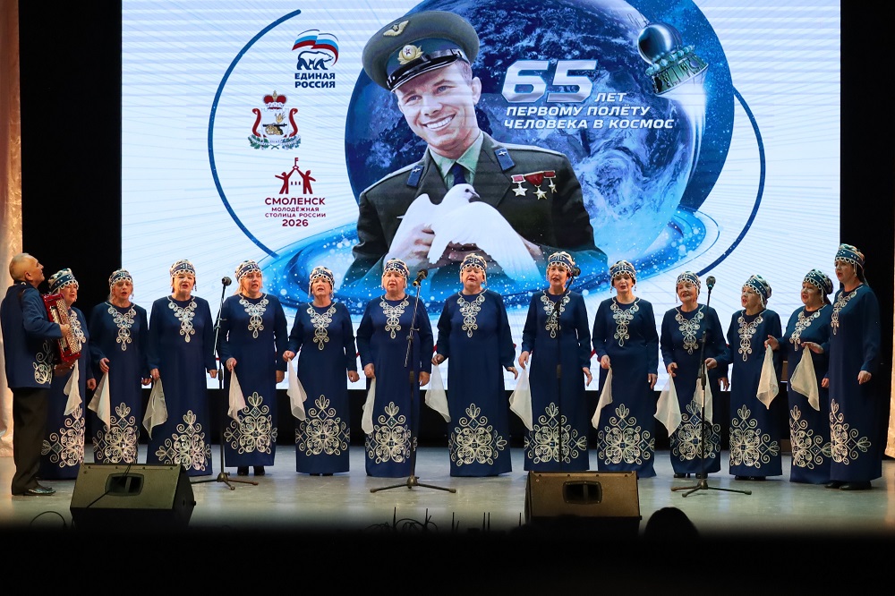 В Смоленской области в Сафонове прошёл зональный этап конкурса «Единой России» «Знаете, каким он парнем был!», посвящённый 65-летию первого полёта человека в космос. На сцене местного культурного центра выступили творческие коллективы и исполнители из 10 десяти муниципальных округов региона. Конкурсная программа длилась почти семь часов. За это время жюри оценило около ста номеров.