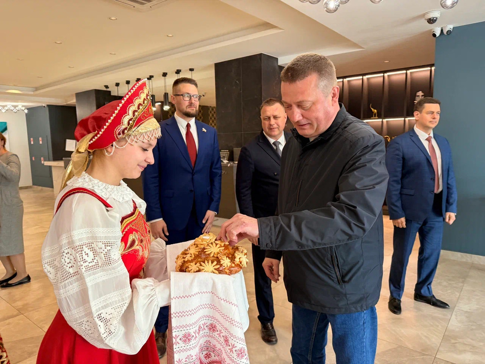Гостей встретили заместитель председателя Совета Федерации Юрий Воробьёв, председатель Смоленской областной Думы Игорь Ляхов, сенатор РФ от Смоленской области Руслан Смашнёв.