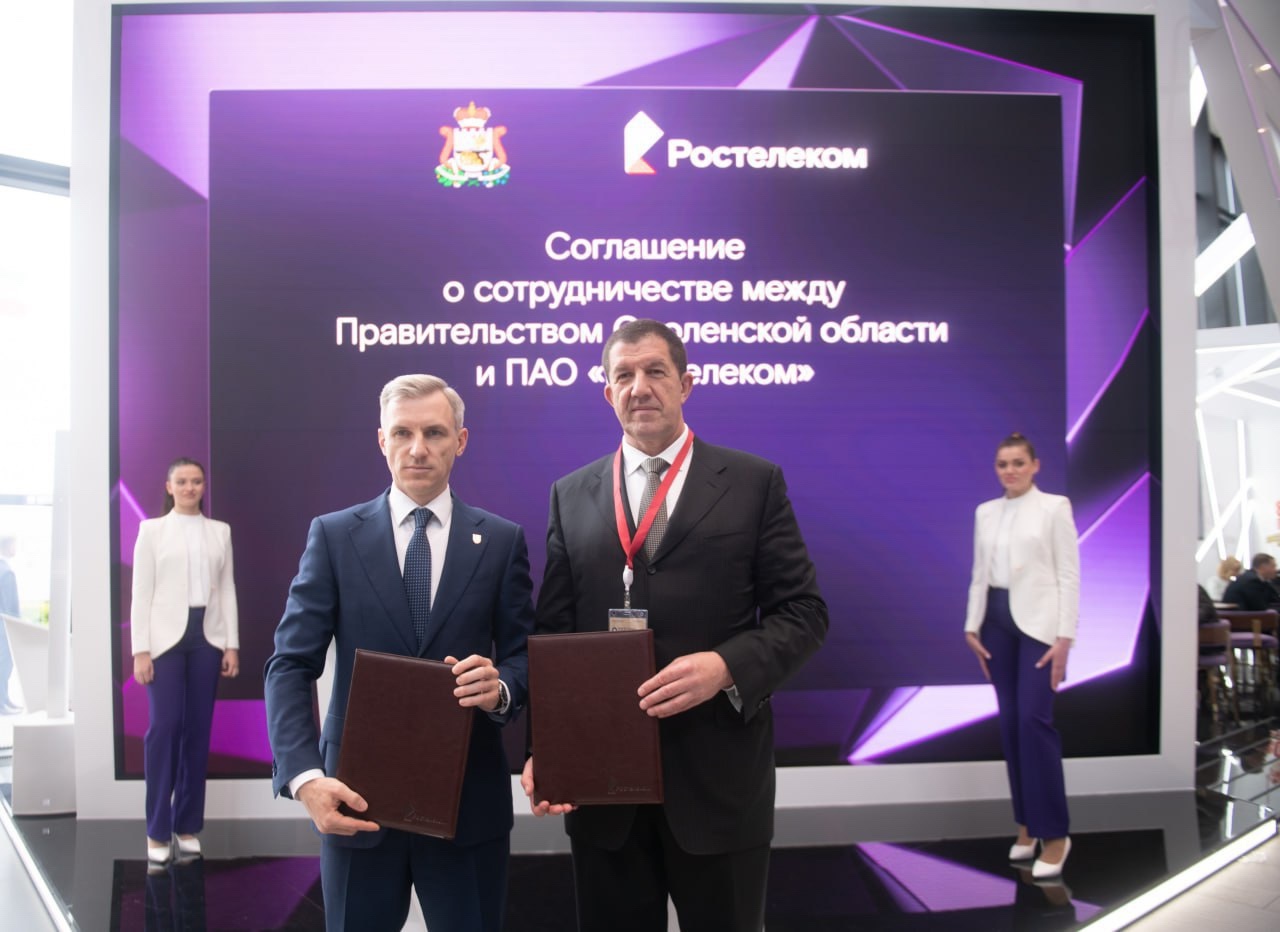 Губернатор Смоленской области Василий Анохин подписал соглашение на ПМЭФ с президентом ведущей отечественной телекоммуникационной компании «Ростелеком» Михаилом Осеевским.