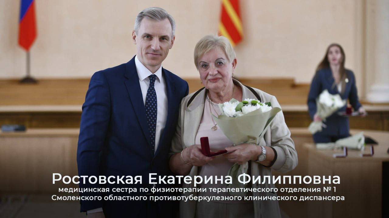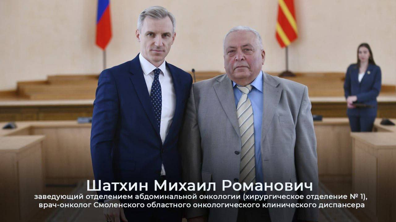 «Работа в медицине – призвание и огромная ответственность. Труд ради жизни и здоровья людей заслуживает искреннего уважения и благодарности. Поздравляю вас с заслуженными наградами! Вы – настоящие герои, ваша деятельность имеет огромное значение для всей Смоленской области», – обращаясь к медработникам отметил Василий Анохин.