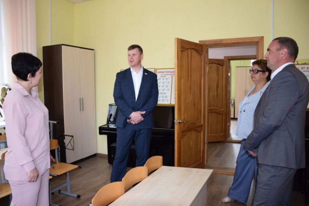 Сенатор РФ Артём Малащенков и депутат Смоленской областной Думы от «Единой России» Сергей Шелудяков посетили модернизированную и отремонтированную по национальному проекту «Культура» школу искусств в Сычёвском округе.
