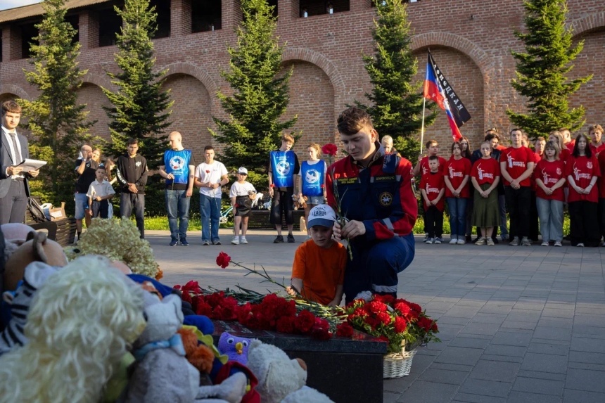 В парке Пионеров собрались представители епархии, военнослужащие, участники специальной военной операции Артём Корнюченков и Александр Зайцев, волонтёры и неравнодушные жители города Смоленска. Они возложили цветы и игрушки к монументу. Митинг организовала «Молодая Гвардия Единой России».