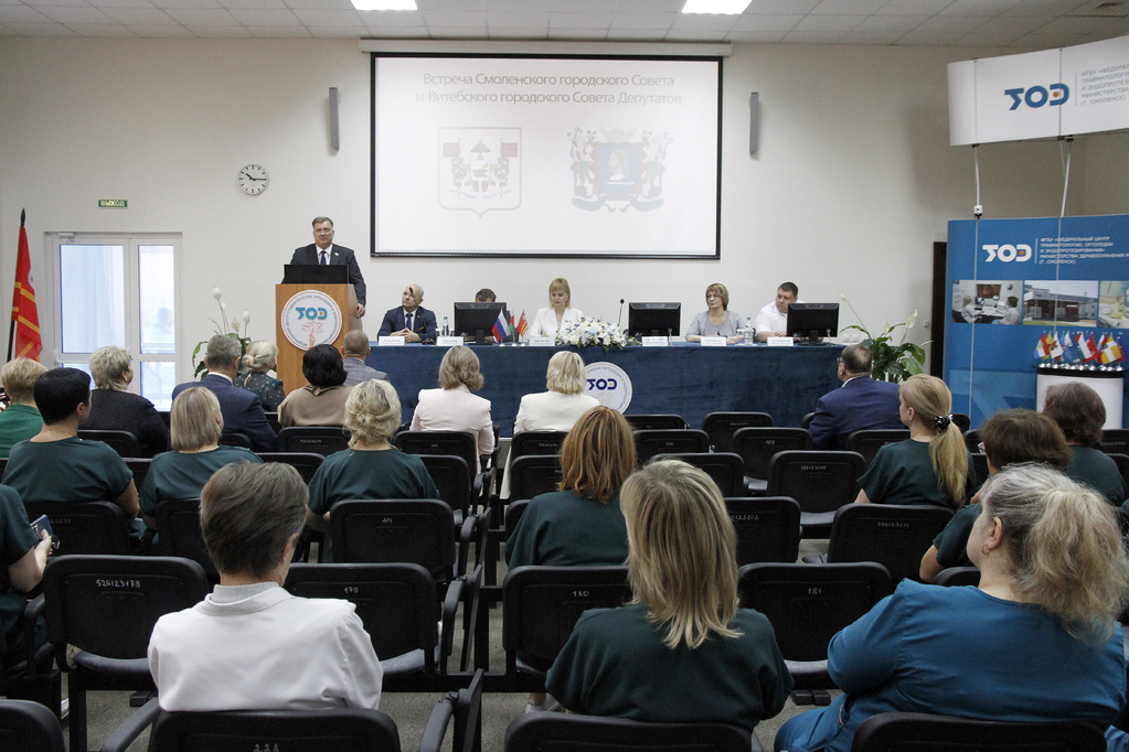 Приём делегации Витебского городского Совета депутатов состоялся на базе Федерального центра травматологии, ортопедии и эндопротезирования города Смоленска. В составе делегации – представители медицинского и научного сообщества Республики Беларусь. Гости познакомились с работой Центра, передовыми методами в сфере здравоохранения и современными трендами медицинского образования, определили перспективные направления взаимодействия, обменялись опытом работы.