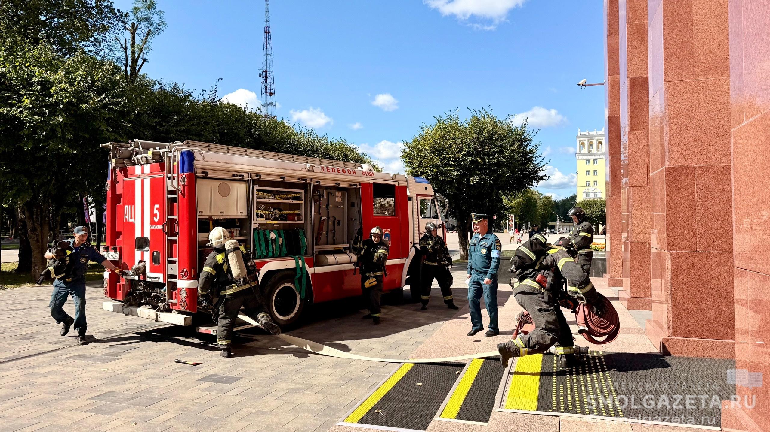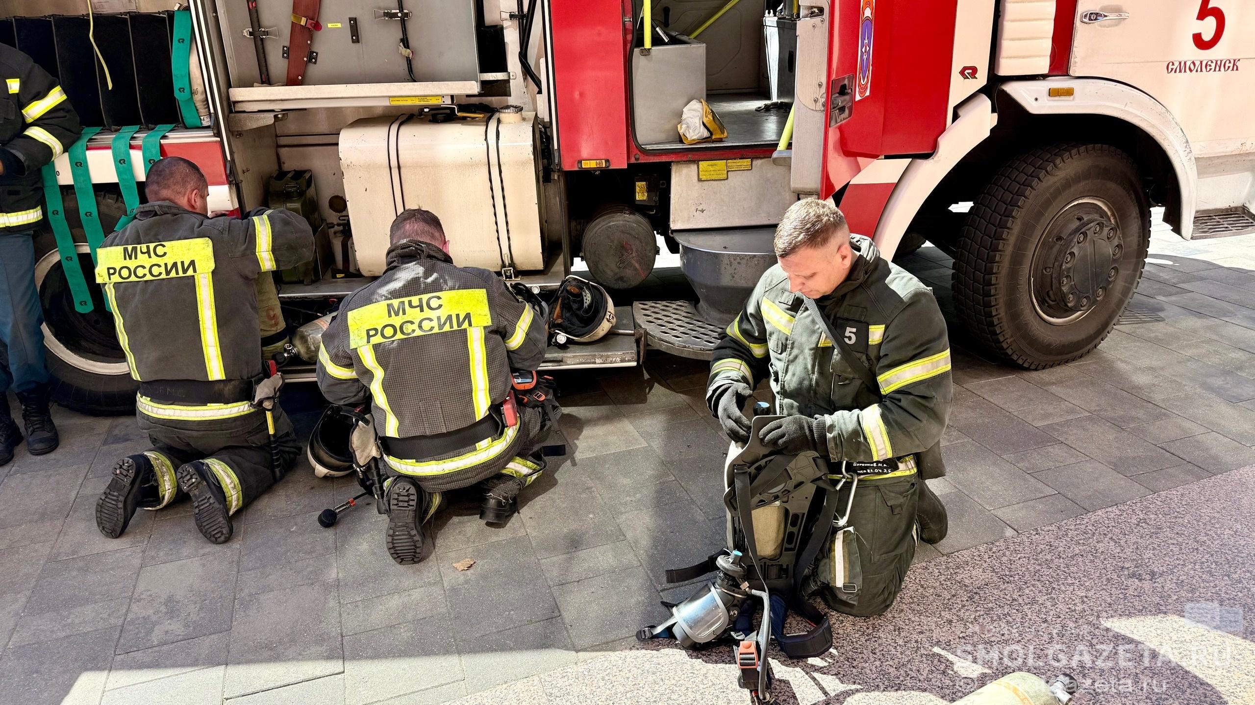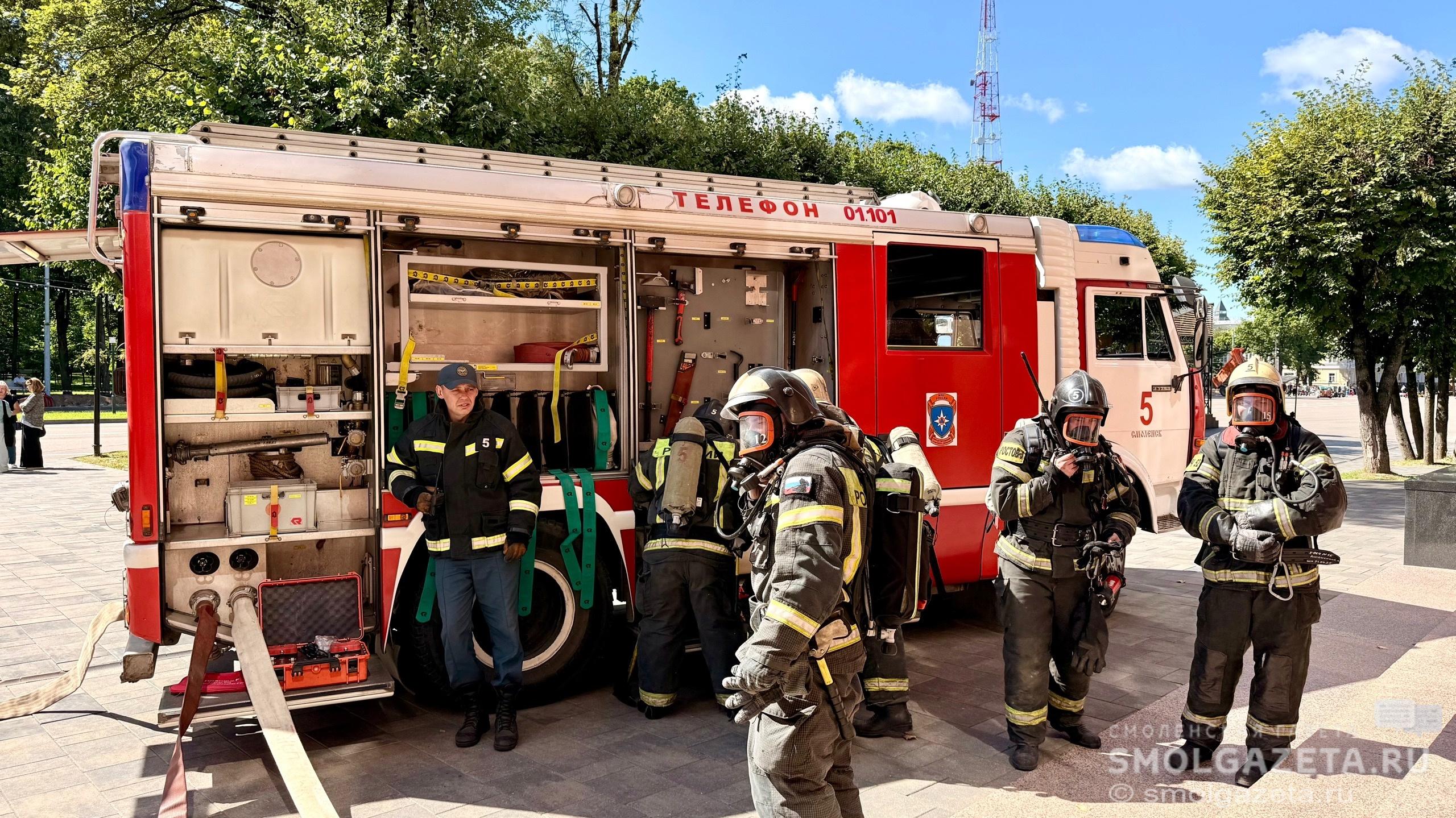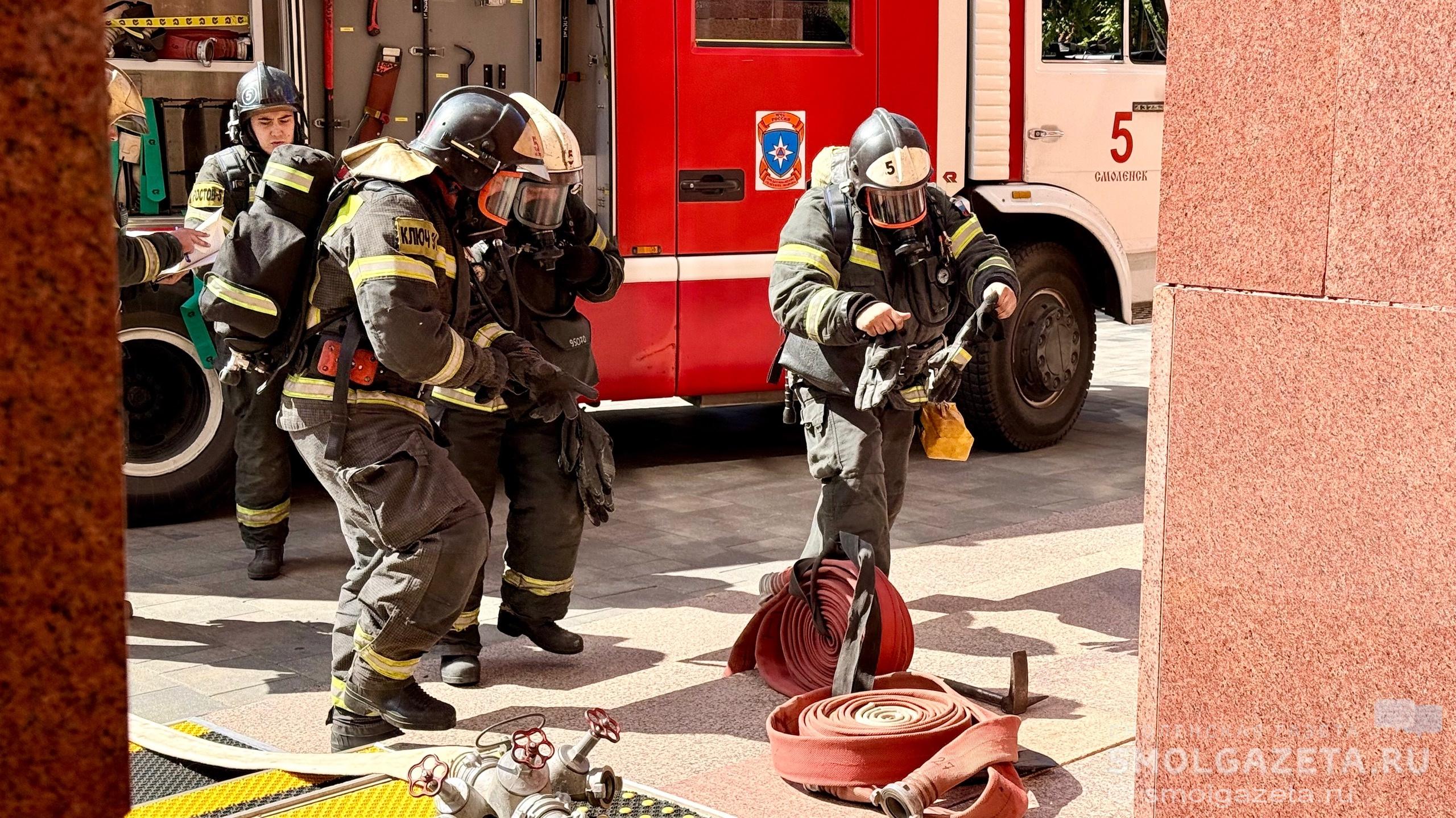 «Сегодня производились пожарно-тактические учения на здании драматического театра имени Грибоедова. Привлекался гарнизон пожарной охраны города Смоленска. Все мероприятия руководством объекта были выполнены в полном объёме. Пожарные подразделения со своими задачами справились: были выполнены в полном объёме все мероприятия, которые были задуманы согласно этим учениям.