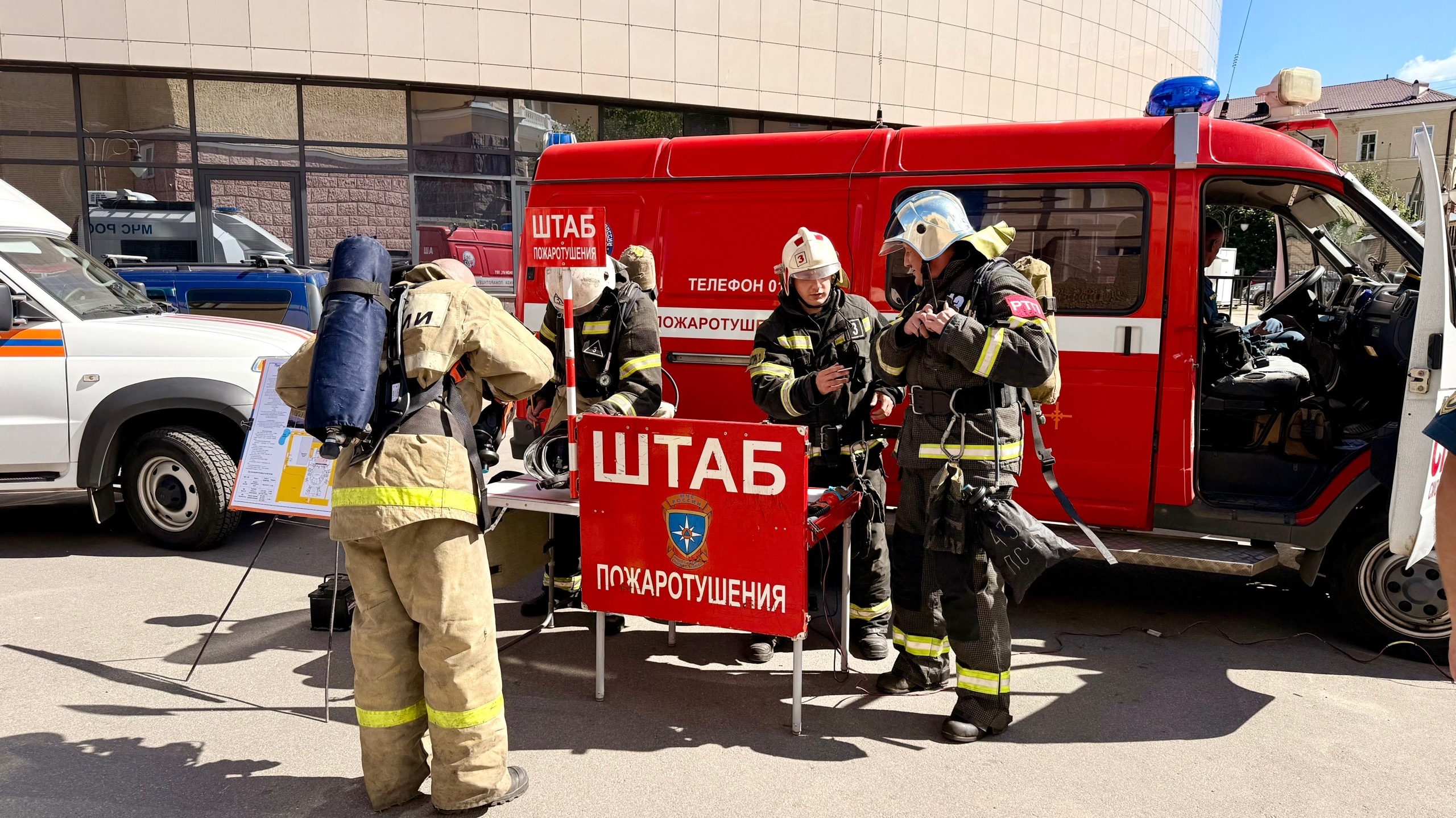 По легенде учений, пламя вспыхнуло прямо на сцене во время спектакля. Огонь быстро распространился по декорациям, создавая угрозу для зрителей и персонала, находящихся внутри. Незамедлительно к месту вызова были направлены пожарные расчёты.