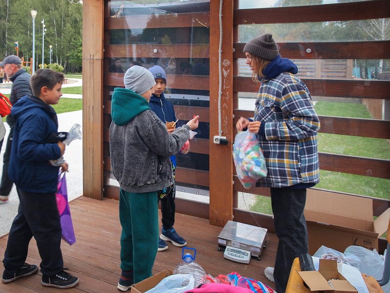 К «Точке переработки» даже выстроилась очередь. Жители всех возрастов приносили сюда пакеты с пластиковыми бутылками и крышечками. За это получали шоперы, термокружки, зубные щетки, «вечные» карандаши и другие сувениры, сделанные из вторсырья.