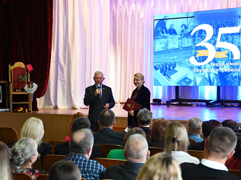 Заместитель председателя облдумы Николай Мартынов отметил 35-летний юбилей смоленского Лицея им. Кирилла и Мефодия, поздравив педагогов и сотрудников учреждения.