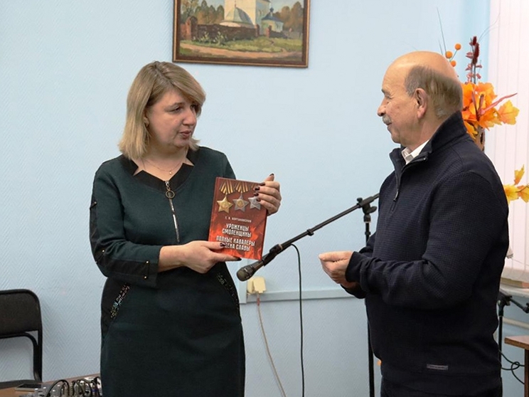 Анатолий Василевич провёл встречу с коллективом Центральной районной библиотеки Вяземского округа, передав в дар ценную книгу краеведа Тимура Бортаковского о смолянах – полных кавалерах ордена «Славы».