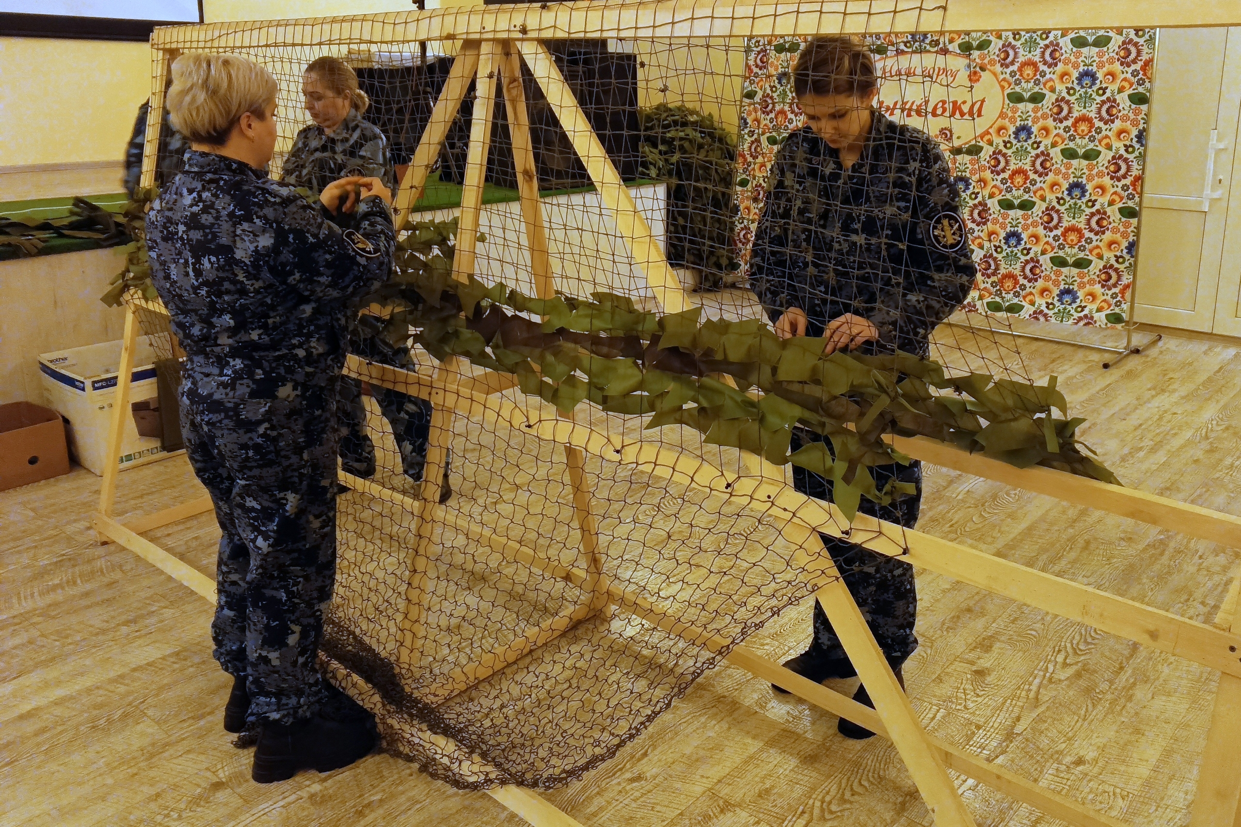 Сычёвские сотрудники УФСИН плетут маскировочные сети для фронта