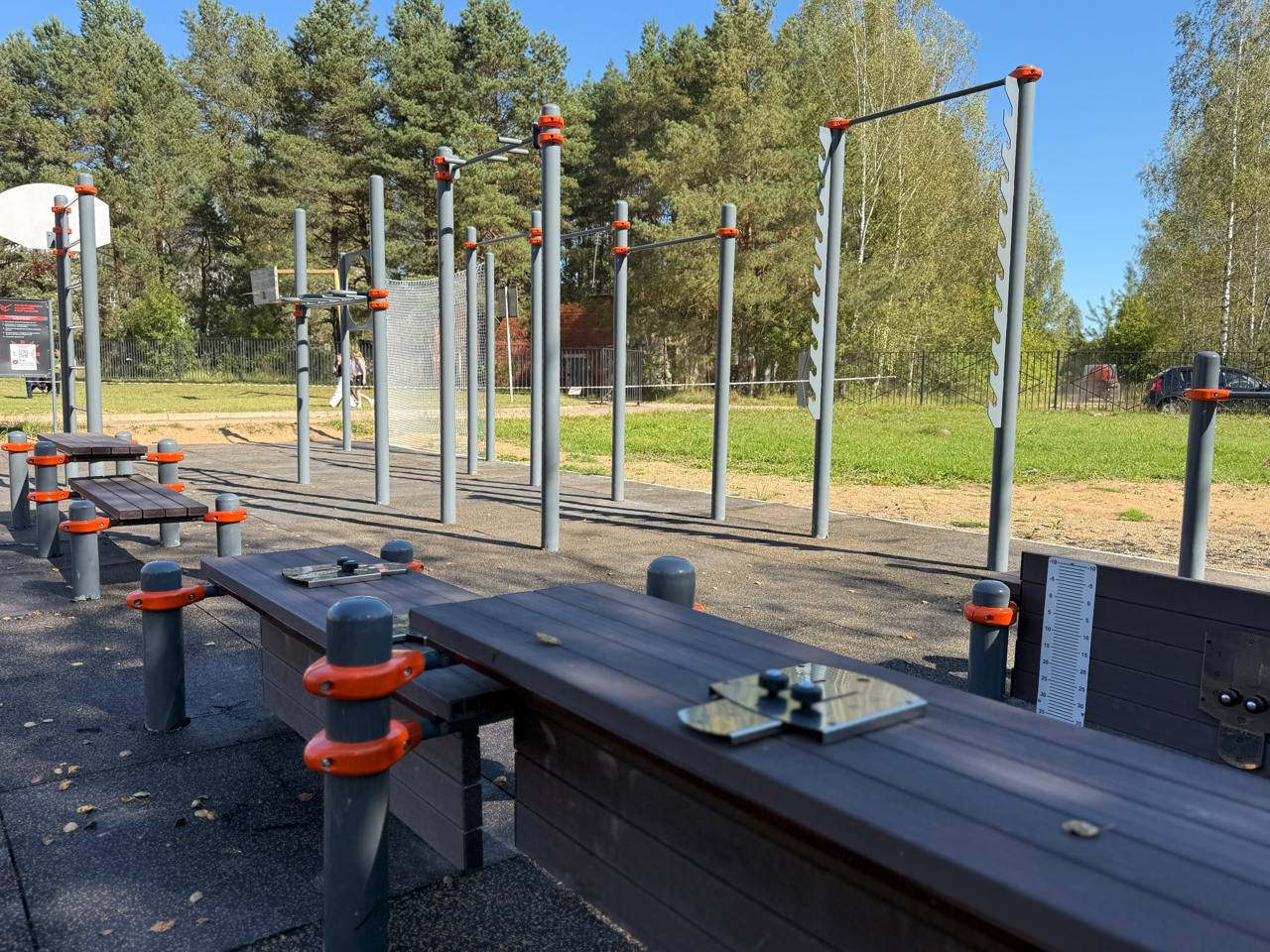 Эти площадки оборудованы всем необходимым для занятий различными видами тренировок: здесь есть турники, брусья, перекладины, скамейки для упражнений на пресс и универсальные тренажёры. Они соответствуют современным стандартам и позволяют проводить разнообразные спортивные программы.