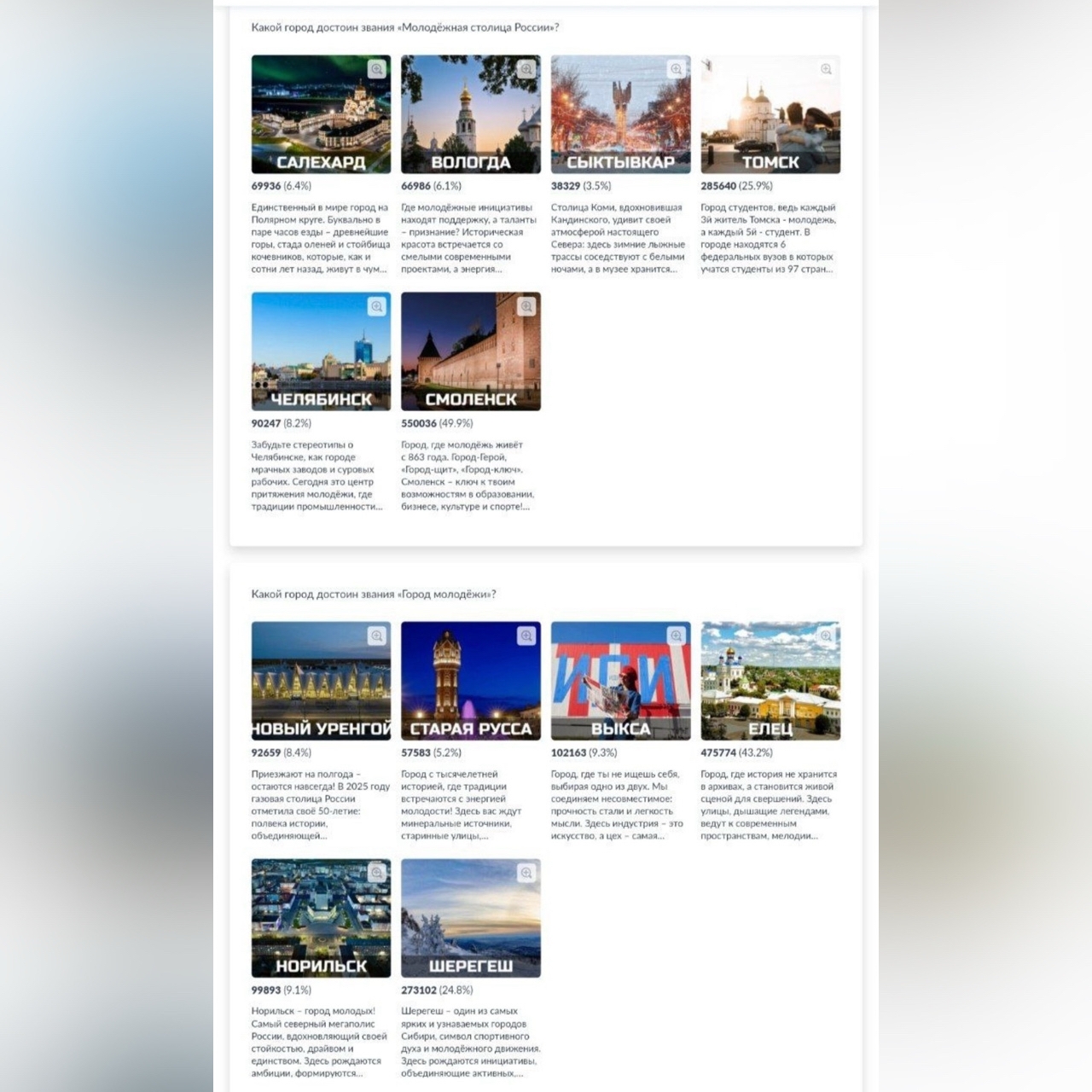 В то же время Юрий Лескин отметил, что борьба за попадание в тройку лидеров остаётся открытой. Разрыв между городами минимален, и результаты могут измениться до завершения голосования. Он подчеркнул, что вхождение в тройку финалистов является значимым и почётным достижением для участников опроса.