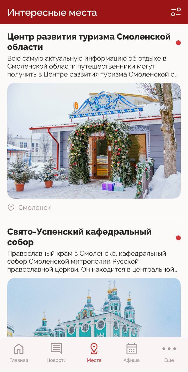 Кроме того, «Мой Смоленск» станет вашим надёжным помощником в поиске комфортного проживания и вкусной еды, предлагая актуальную информацию о гостиницах, отелях, кафе и ресторанах региона.
