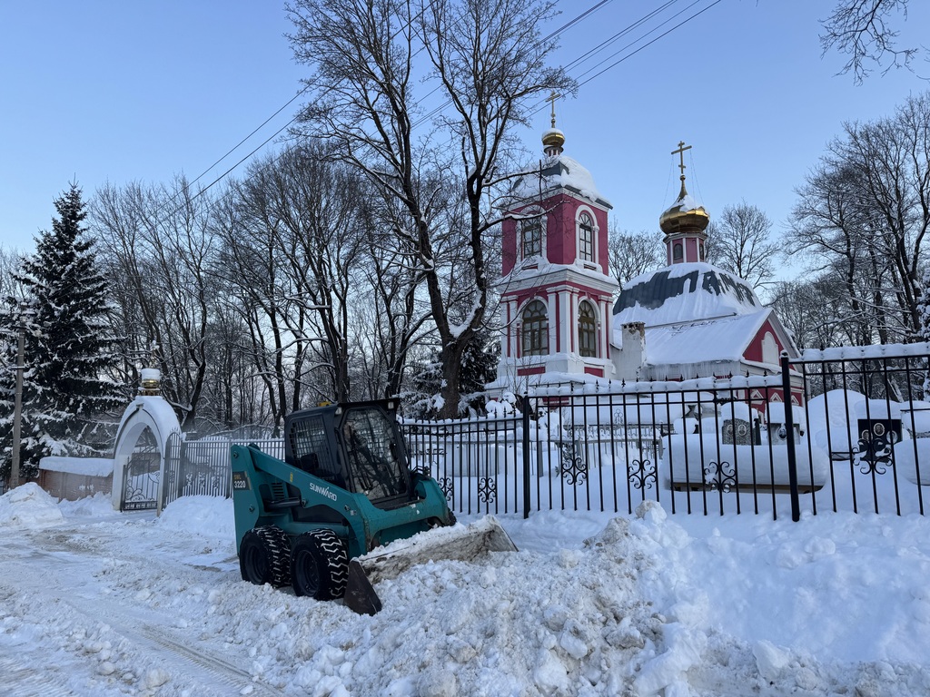 Единороссы расчистили от снега территорию у храма на улице Окопной перед Крещением