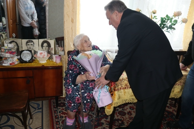 Глава города Десногорска, секретарь местного отделения партии Анатолий Терлецкий поздравил жительницу блокадного Ленинграда Валентину Ивановну Гоман.