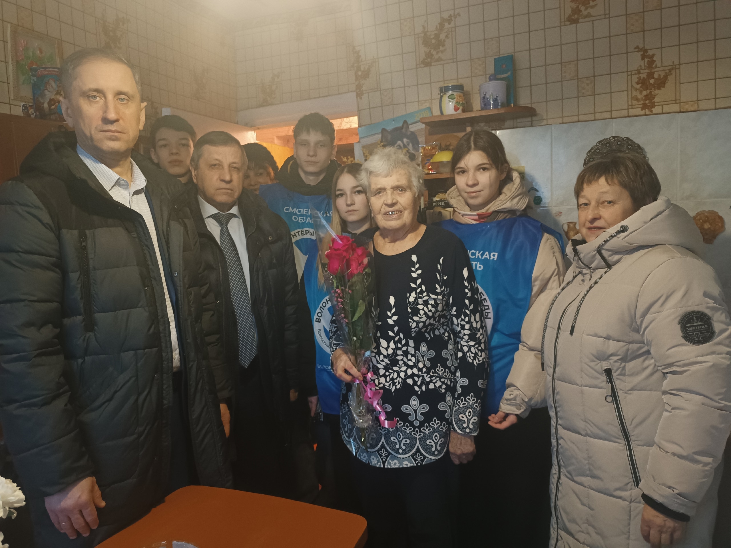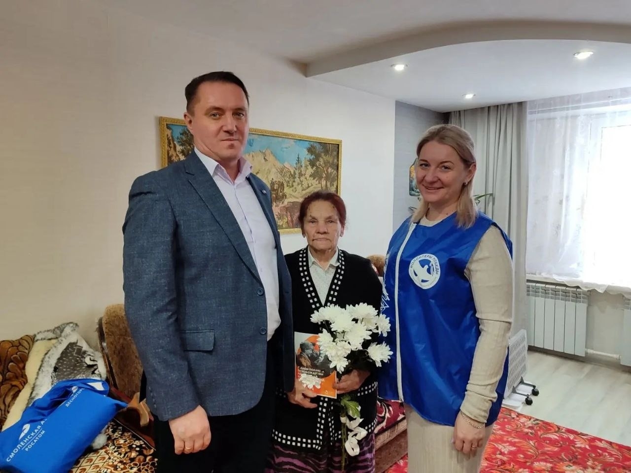Глава Монастырщинского округа, секретарь местного отделения «Единой России» Виктор Титов выразил благодарность жительнице блокадного Ленинграда Клавдии Михайловне Фроленковой.