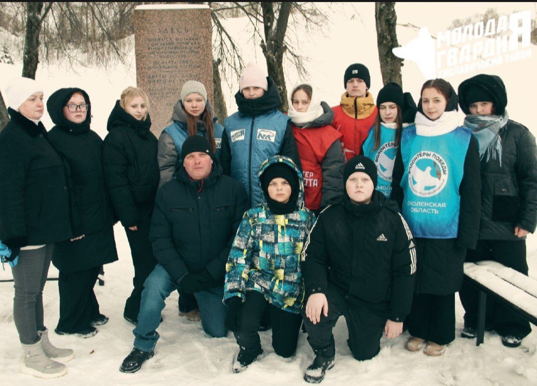 В Хиславичском округе ребята из «Молодой Гвардии» и «Волонтёрской Роты Боевого Братства» приняли участие в мероприятии «По ком звонит колокол» – они почтили память погибших минутой молчания и возложили цветы к памятнику.