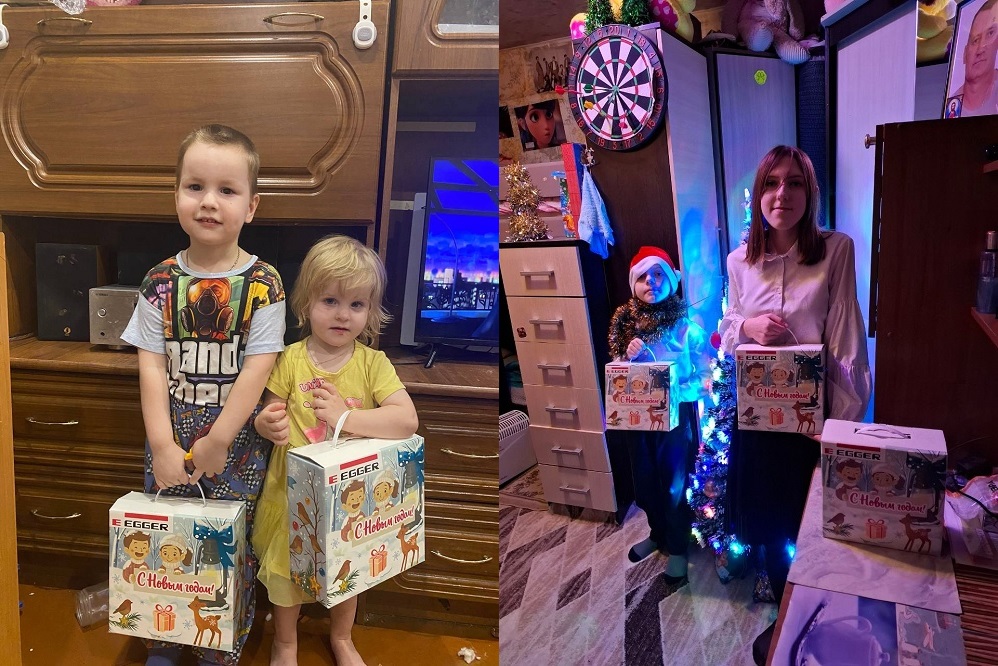 В преддверии и в первые дни Нового года ООО «ЭГГЕР Древпродукт Гагарин» поддержал сразу несколько праздничных инициатив, направленных на детей и семьи Гагаринского округа. В общей сложности новогодние подарки от предприятия получили более 400 детей — подопечные социальных учреждений и дети сотрудников завода.