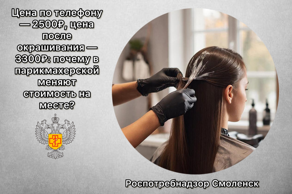 Жительница Смоленска записалась в салон на окрашивание волос по цене 2500 рублей, которую озвучил администратор. После процедуры мастер объявил итоговую сумму 3300 рублей, объяснив это перерасходом краски и необходимостью оплатить сушку. В прейскуранте салона эти позиции указаны не были, терминала для безналичной оплаты также не оказалось.