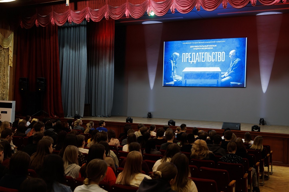 В Смоленске в актовом зале Смоленского государственного медицинского университета состоялся показ фильма «Предательство» Заслуженного журналиста Российской Федерации Андрея Медведева. Фильм повествует о гражданах страны, осуждённых за террористическую и экстремистскую деятельность. В основе ленты — истории отбывающих наказание. Мероприятие прошло в рамках цикла «Разговоры о главном…»