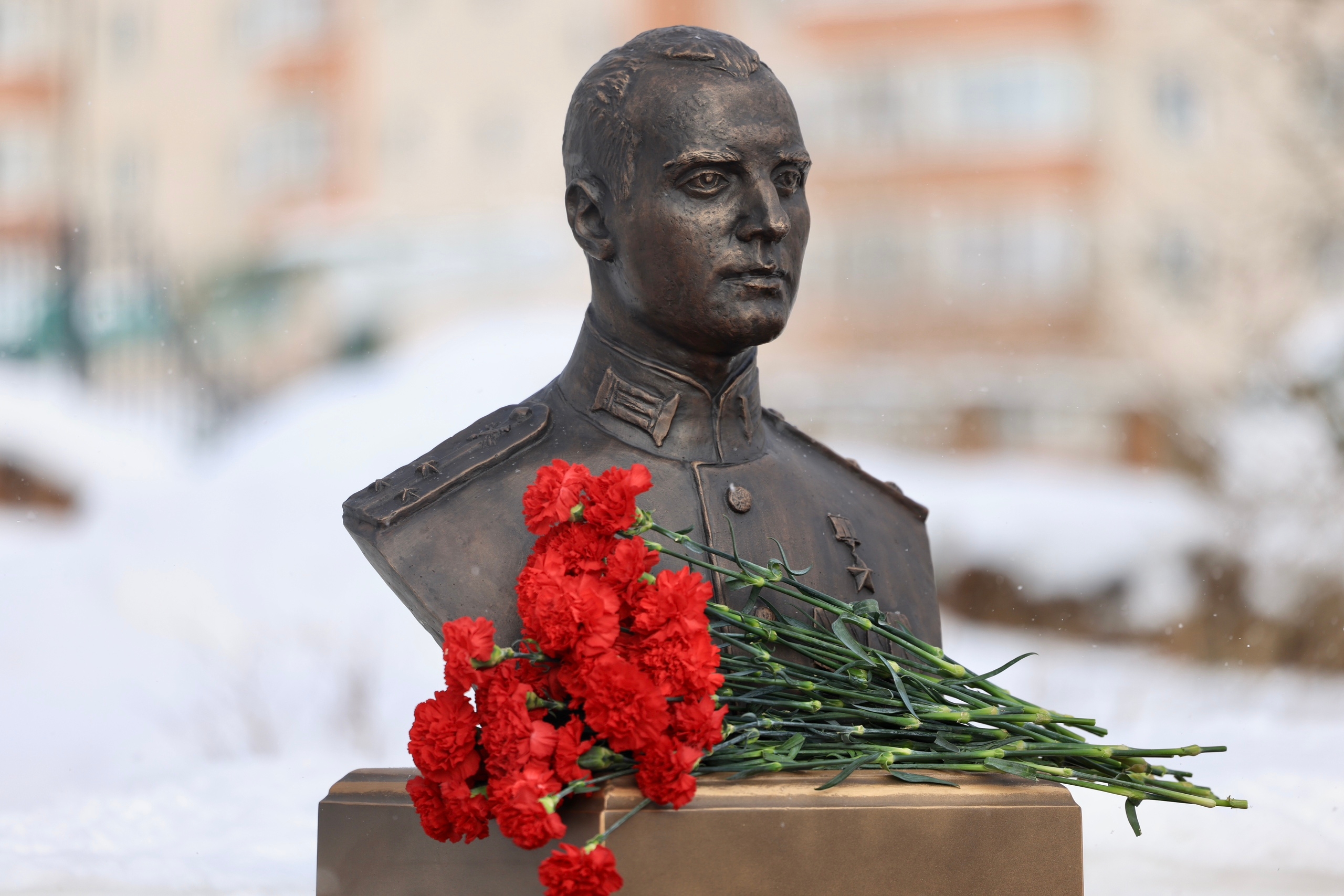 Символом вечной памяти и благодарности потомков стала церемония возложения цветов. Участники мероприятия почтили память героя минутой молчания и возложили венки и живые цветы к подножию открытого бюста.