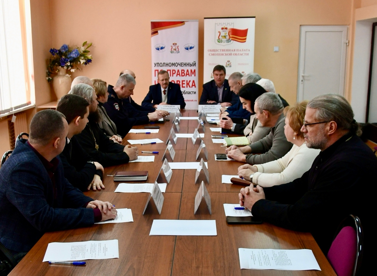Первое организационное заседание прошло под руководством Уполномоченного по правам человека в регионе Геннадия Сенченкова и председателя Общественной палаты Смоленской области Дениса Пестунова. Участие в нём также приняли представители УФСИН и УМВД.