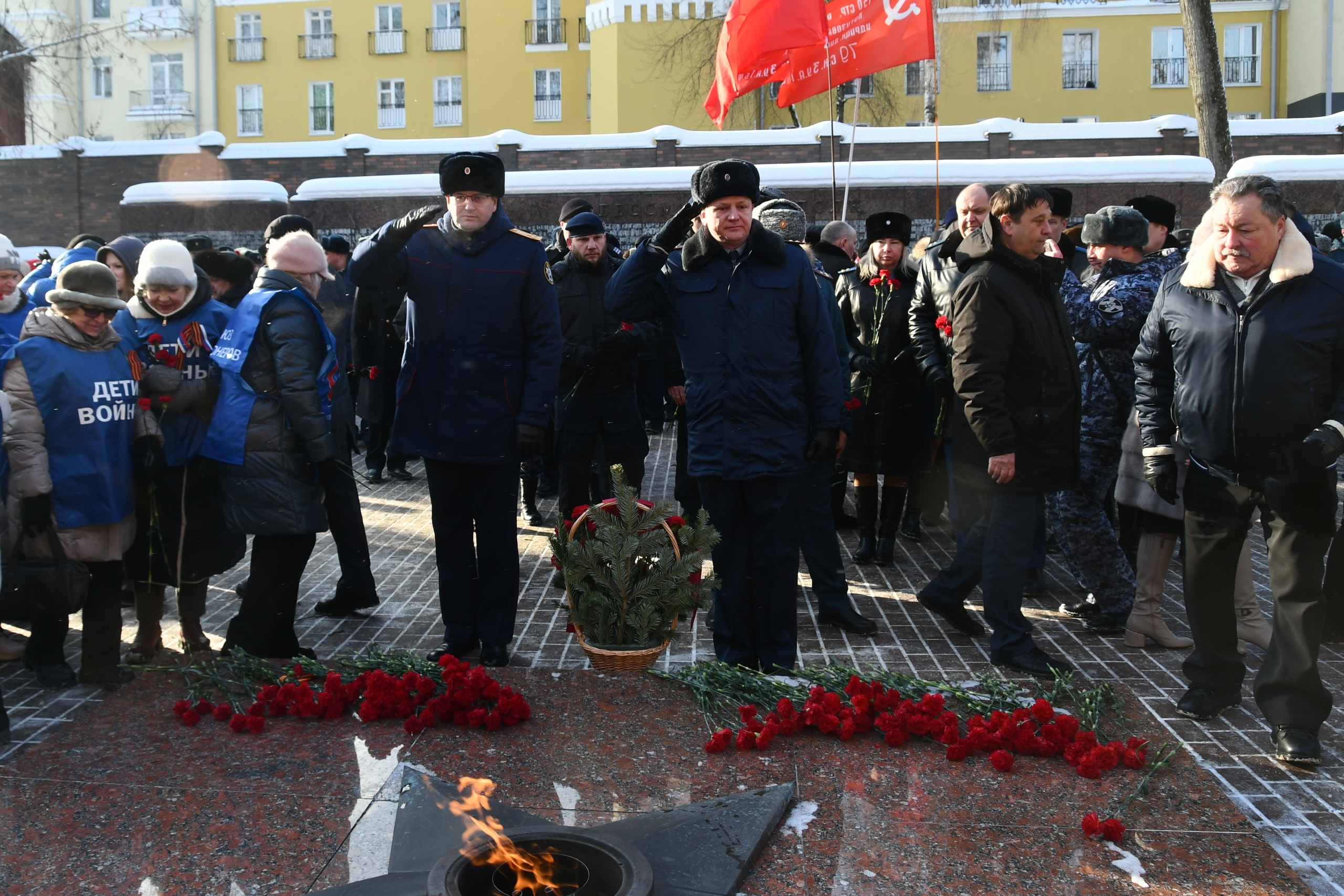 Участники митинга почтили память павших защитников Отечества минутой молчания и возложили цветы и венки к Вечному Огню.