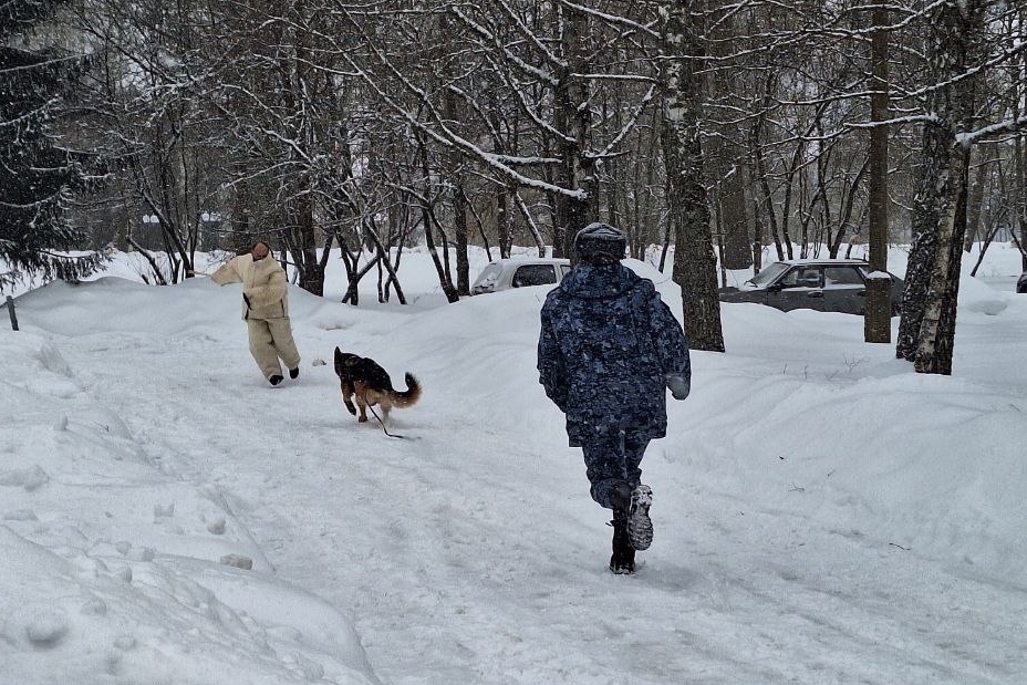 Служебные овчарки Хорд и Факир под руководством своих наставников продемонстрировали навыки общей и специальной дрессировки. Особенно зрелищной частью их выступления стало задержание «опасного правонарушителя».