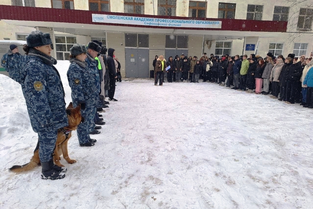 Сотрудники учреждения УФСИН, расположенного в поселке Горный, поздравили с Днем защитника Отечества студентов Сафоновского филиала Смоленской академии профессионального образования.