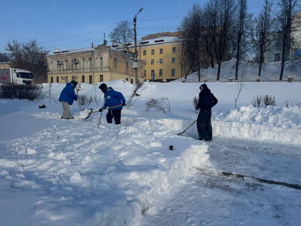 В Смоленске активисты «Единой России» расчистили от снега территорию у ДК железнодорожников