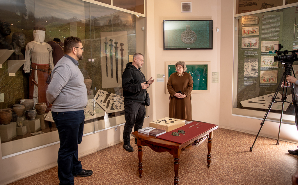 Передача археологических находок в коллекцию Смоленского государственного музея-заповедника, конечно же, сопровождалась рассказом о самых важных из них. Слово вновь взял Василий Новиков, подчеркнув при этом, что все экспонаты – результат совместной работы археологов, которая не ограничивалась собственно раскопками. Затем была обработка и реставрация предметов, подготовка и публикация сведений о них в научных источниках – в общем, всё, чем обычно занимаются учёные по завершении полевых работ.