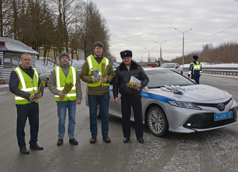 В преддверии Международного женского дня смоленские Госавтоинспекторы провели традиционную праздничную акцию «Цветы для автоледи». Она направлена на создание позитивного настроения у участников дорожного движения и напоминание о важности взаимного уважения на дорогах.