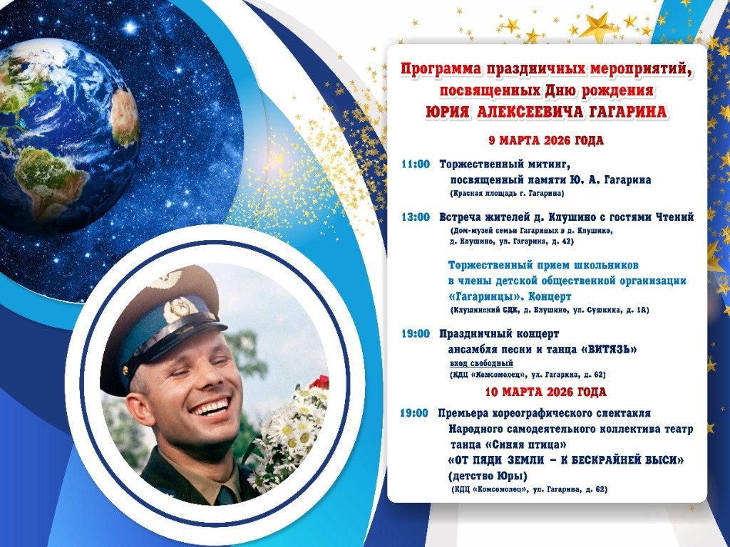 В честь этой знаменательной даты, уже в 53-й раз, на малой родине первого космонавта планеты откроются Общественно-научные Гагаринские чтения. Это событие, ставшее доброй традицией, соберёт вместе тех, кто продолжает дело Гагарина и вдохновляется его подвигом.
