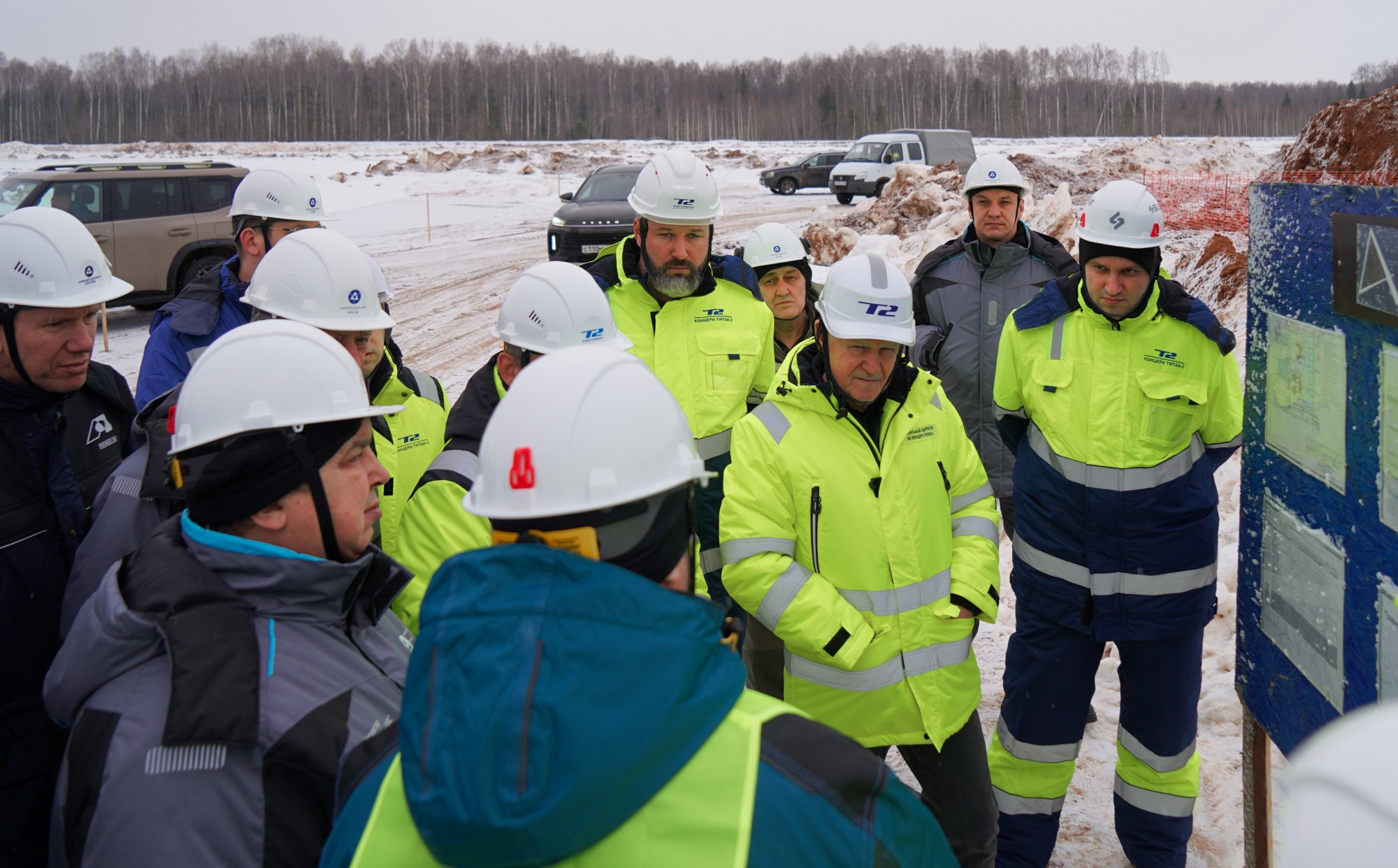 Программа посещения началась с детального осмотра площадки возведения ключевых объектов. Участники штаба проинспектировали ход работ по сооружению строительно-монтажной базы (СМБ), на территории которой произведены работы по устройству фундаментов трех зданий: инженерного корпуса генподрядчика и заказчика, столовой на 100 посадочных мест.